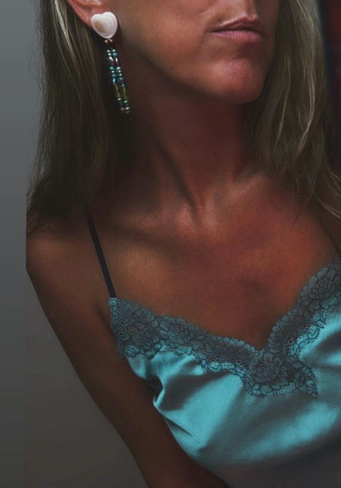 Shell & Czech glass beaded dangle earrings strung on merino silk